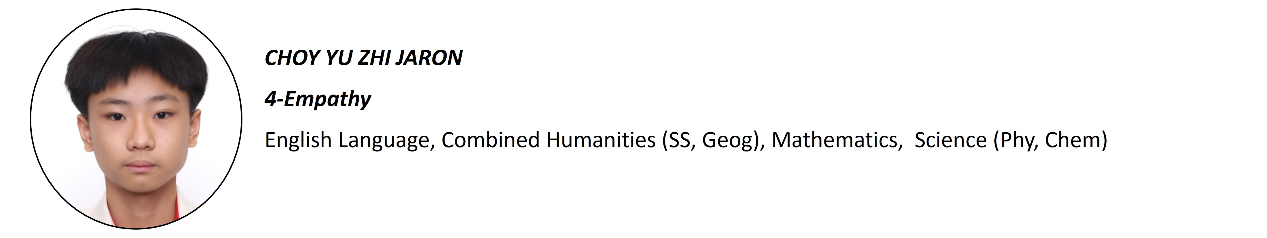In the lower secondary years, I was coping well academically. However, when I reached Secondary 3, I began to face challenges in several subjects. Instead of letting those difficulties define me, I made a firm decision to improve in Secondary 4. I pushed myself to study more consistently, practiced diligently, and sought ways to strengthen my understanding. Through perseverance and hard work, I achieved AL5 for my GCE N-Level examinations. This result reflects the growth and progress I have made over my four years at Regent.