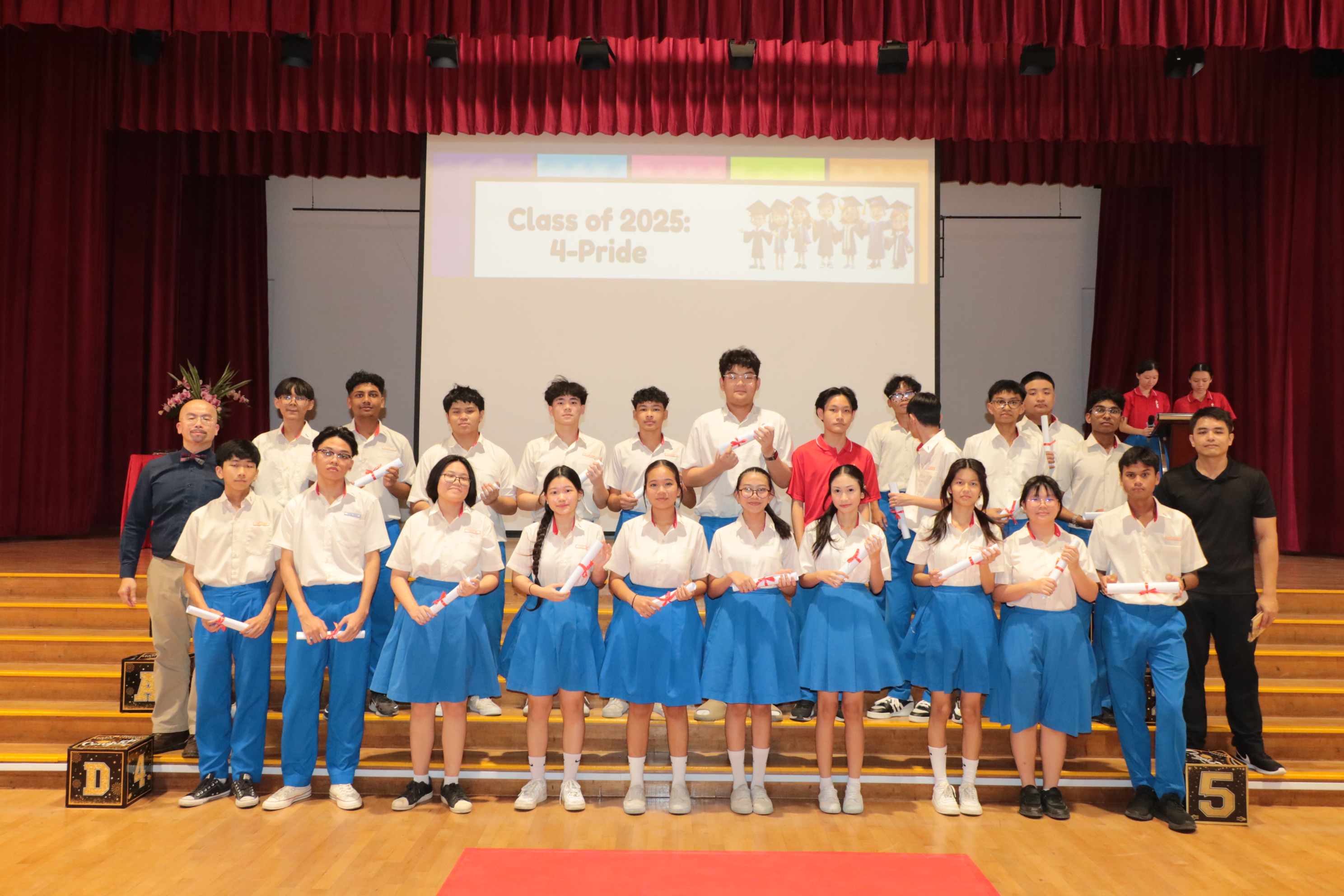 The assembly kicked off with an inspiring address by Upper Secondary Year Head, Mdm Annie Teo, who encouraged students to embrace challenges with courage and resilience. Graduands were reminded to reflect on the growth, friendships, and memories they had made, while stepping confidently into the adventures that lie ahead.
