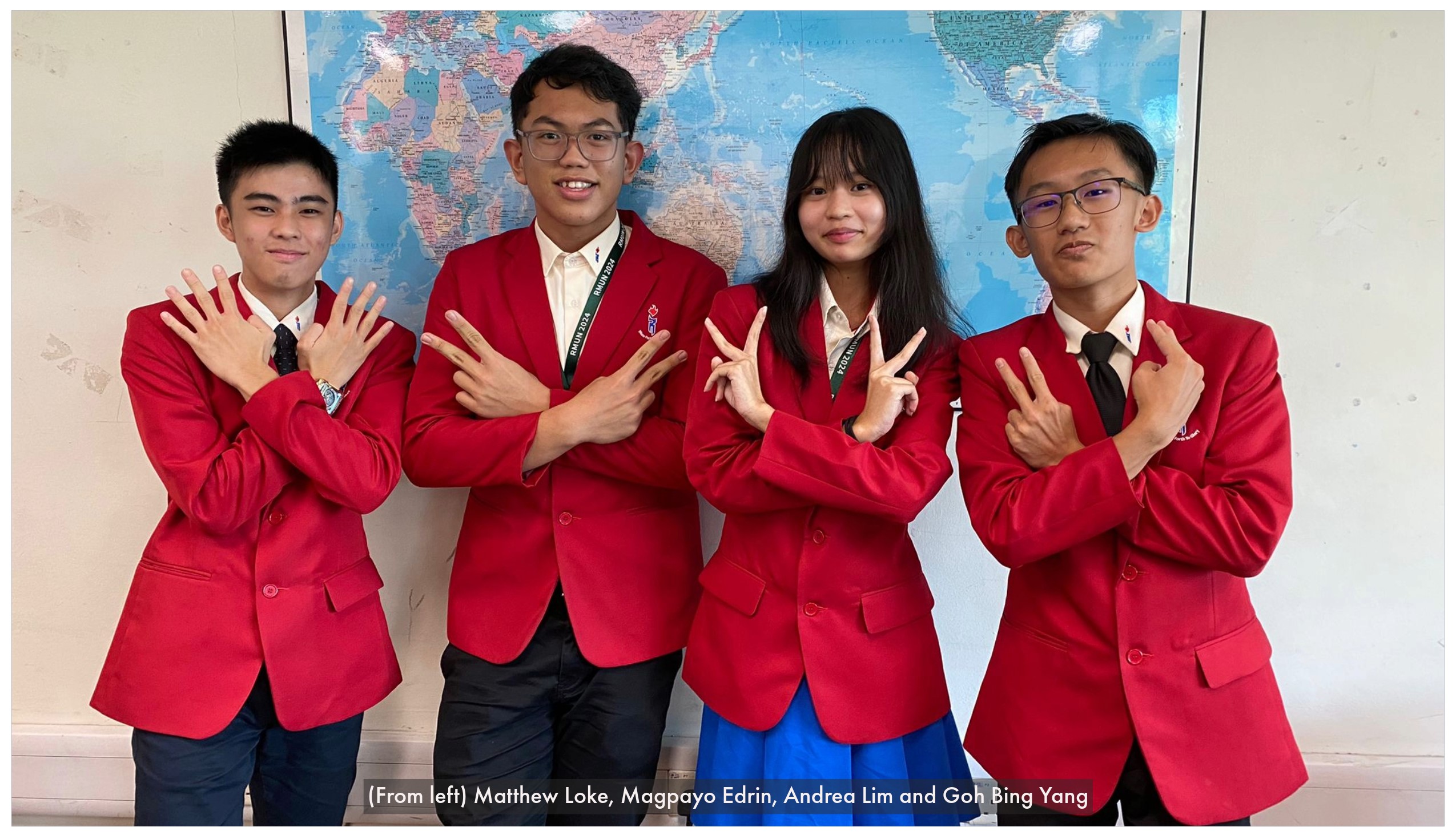 As part of our school's Applied Learning Programme on Environmental Sustainability, the Humanities Department sent a team of student delegates to the Raffles Institution’s Model United Nations (RMUN) Environmental Assembly in May. The assembly focused on pressing global issues such as biofuel usage and plastic pollution, offering our students—Goh Bing Yang, Lim Ying Xuan Andrea, Magpayo Edrin Jae Quias, and Matthew Loke Jia Cheng from 4-Gratitude—an invaluable opportunity to engage in inter-school discussions and advocate for environmental sustainability.