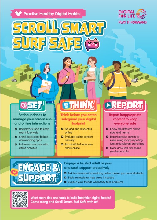 Key topics covered during the session included practising respectful online etiquette, understanding the long-term impact of digital footprints, staying vigilant against cyber threats, and maintaining a healthy balance in screen time. Students were reminded of the importance of showing empathy and respect in online interactions, as well as the need to seek help from trusted adults when faced with harmful or uncomfortable situations on the internet.