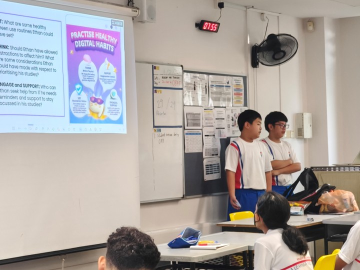 The session was led by our dedicated Cyberwellness Ambassadors, who took on the important role of advocating positive online behaviour and raising awareness about common digital risks. Through relatable real-life scenarios and interactive classroom discussions, the ambassadors encouraged their peers to reflect on their own online practices and make thoughtful choices in digital spaces.