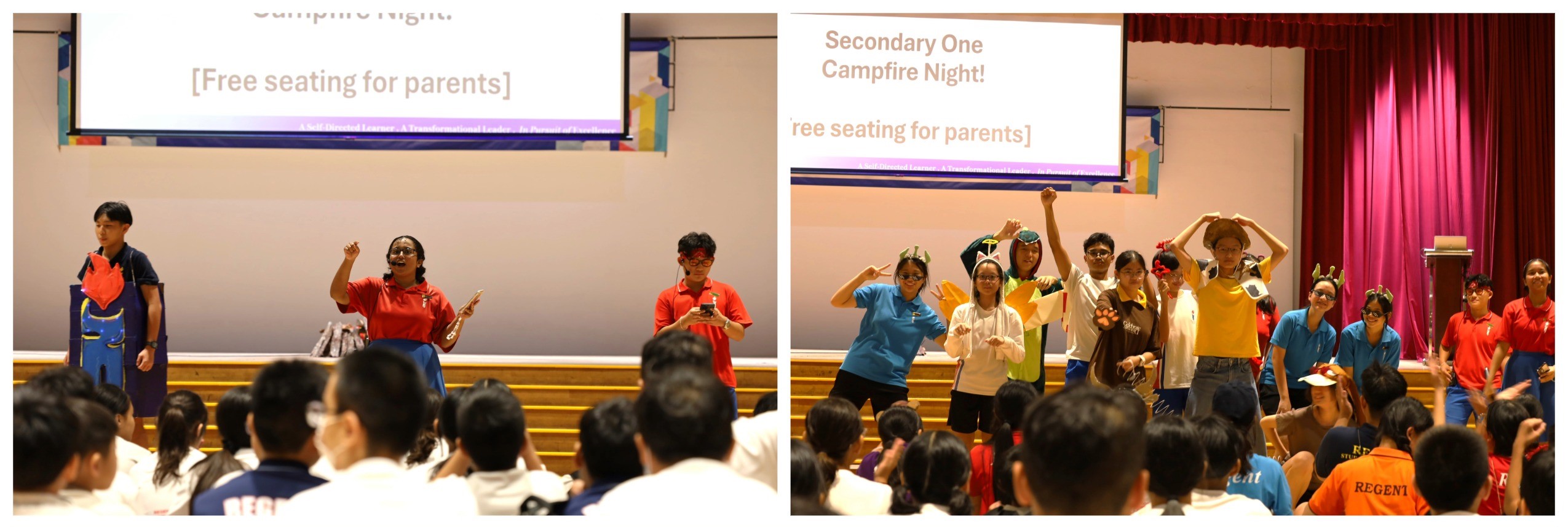 To end the Orientation with aplomb, the Secondary Ones showcased their class cheers and dances in front of their parents and teachers and finished with a rousing rendition of the school song. The pouring rain did not dampen their spirits and just like the fire that was ignited that night, we hope that all the Secondary One Regenites will continue living out our PRIDE values and blaze forth to glory as they start their new journey here.